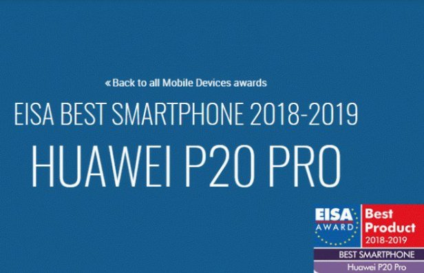 Η EISA (European Image And Sound Association) ανακήρυξε σε καλύτερο κινητό τηλέφωνο για το 2018-2019 το Huawei P20 Pro.