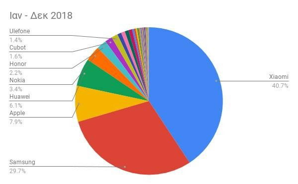 Όσον αφορά τα μερίδια των κατασκευαστών: «Xiaomi 40.7%, Samsung 29.7%, Apple 7.9%.Το τελευταίο τετράμηνο, Xiaomi, Apple, Huawei κέρδισαν μερίδιο, ενώ η Samsung έχασε.»