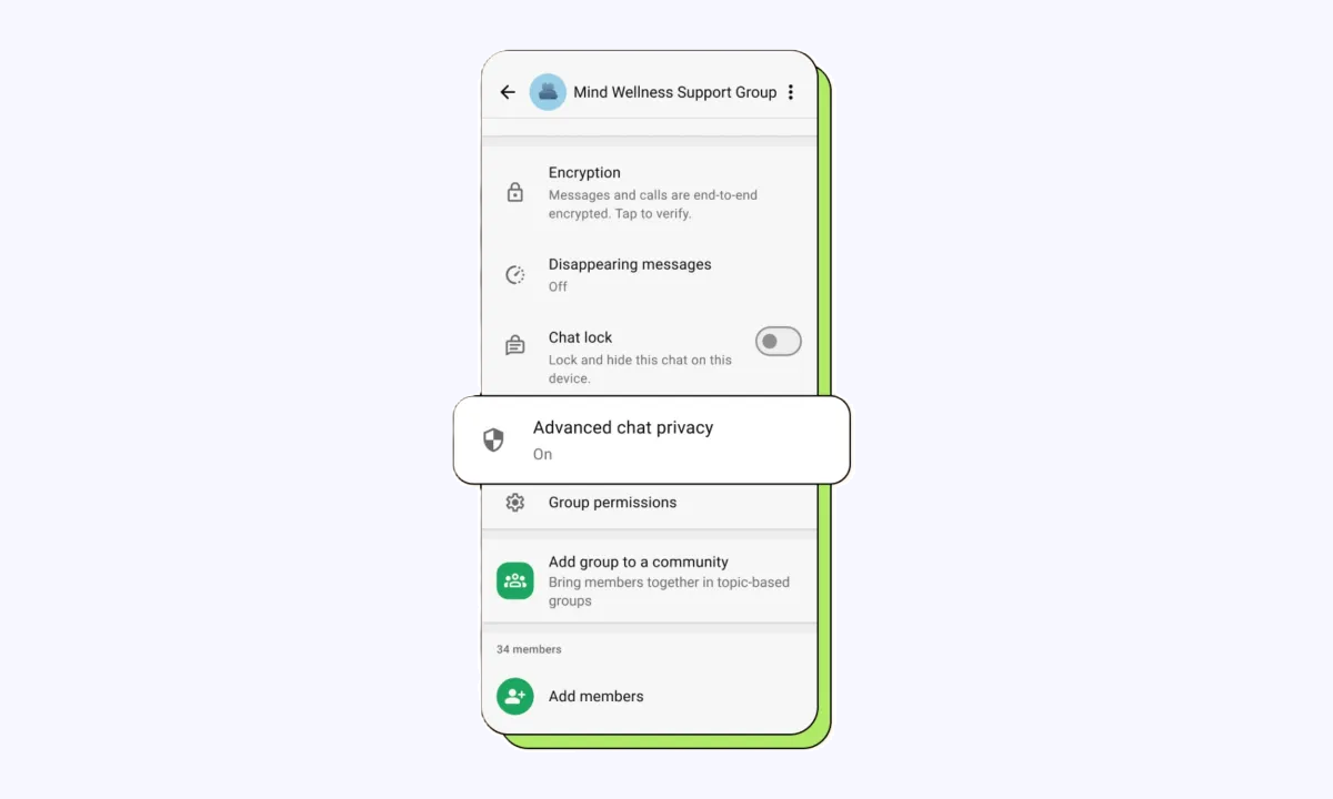 Για να αντιμετωπίσει τους ψηφιακούς κινδύνους, το WhatsApp λανσάρει μια νέα δυνατότητα που θα εμποδίσει οποιοδήποτε μέλος να εξάγει τις εγγραφές συνομιλίας και να τις μεταφέρει αλλού. Η εν λόγω δυνατότητα ονομάζεται Advanced Chat Privacy και ισχύει για ομαδικές συνομιλίες καθώς και για συνομιλίες ένας προς έναν.